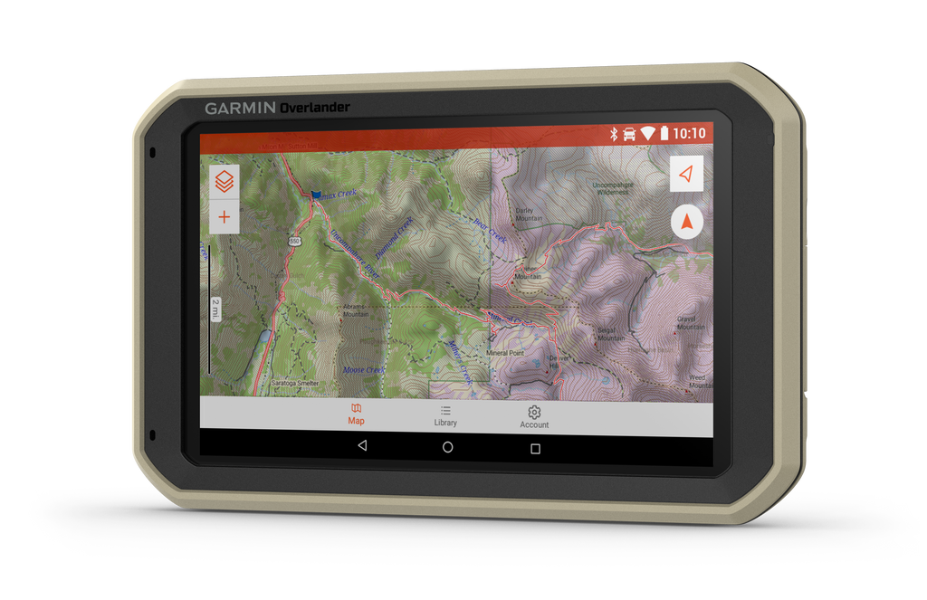 Garmin Explore™ APP Easily sync tracks, routes and waypoints across your Overlander navigator, smartphone and desktop1; also, download additional maps including U.S. satellite imagery and USGS quad sheets on the 64 GB of storage -
