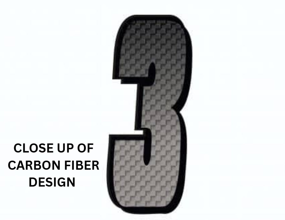 • Block font with carbon fiber texturing, top-to-bottom color gradations.