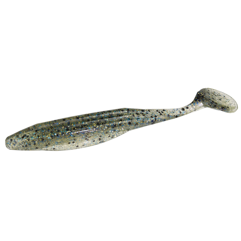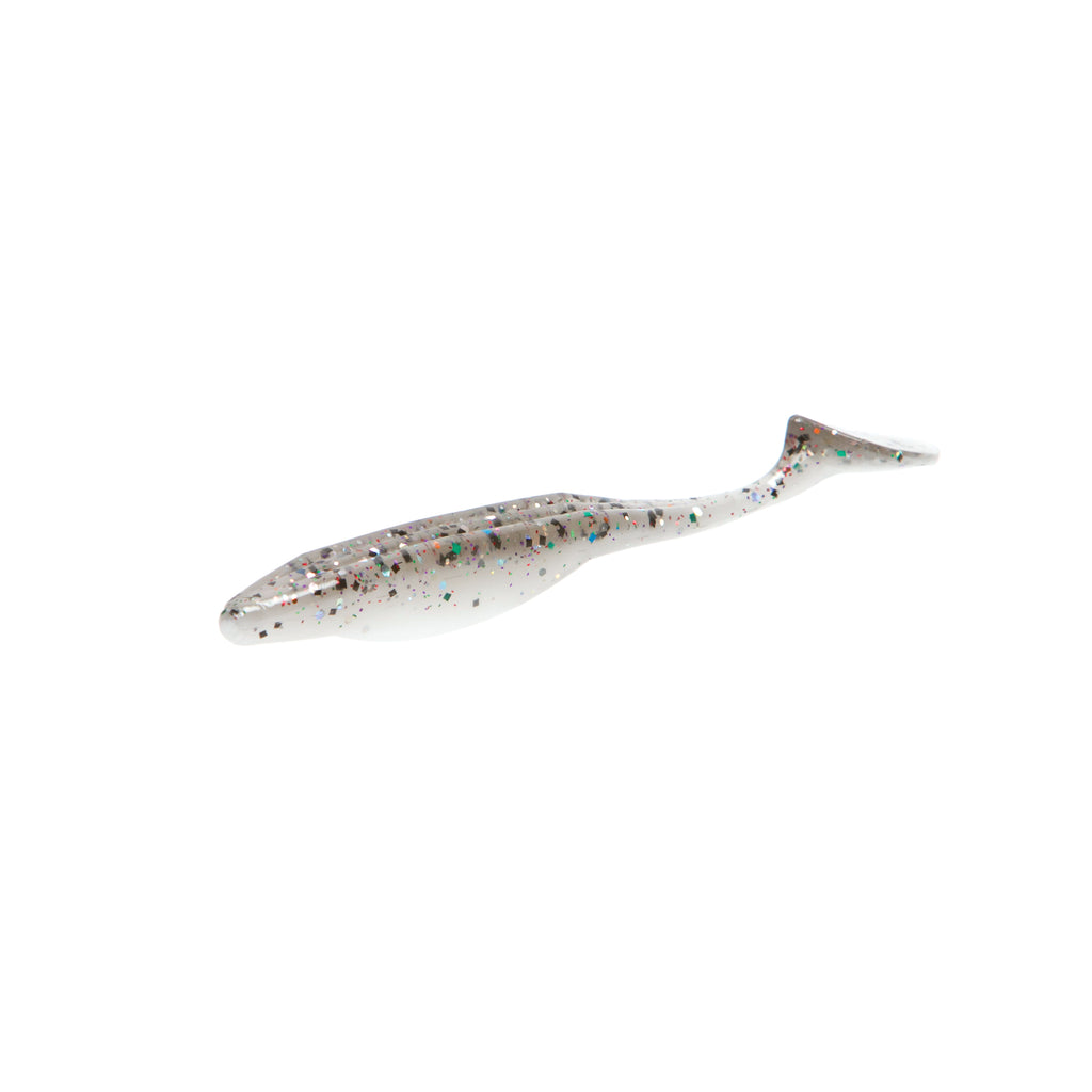 All of the great characteristics of the original Super Fluke, now with a hard-pounding paddle tail and in a downsized package. You can fish it like its predecessor, with a swoop and glide motion, or wind it steadily and feel it pulse like a spinnerbait. It’s great by itself or on the back of a swim jig or vibrating jig, where it calls fish from a distance with its sizable acoustic footprint. The Jr., can also be used on back of a fish head spin or under spin style bait.