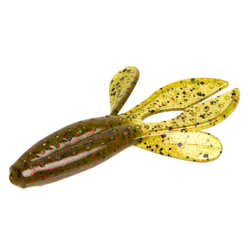 The Zoom Z-Hog is a compact flipping machine designed to reach bass where they hide. Its streamlined body, paired with a heavy weight, slips effortlessly through the thickest vegetation, while its flappers and rabbit-ear tail deliver a subtle glide that perfectly mimics a fleeing baitfish. Deadly in dense cover, the Z-Hog turns tough-to-reach spots into prime strike zones, making it a go-to bait for big-bass hunters.